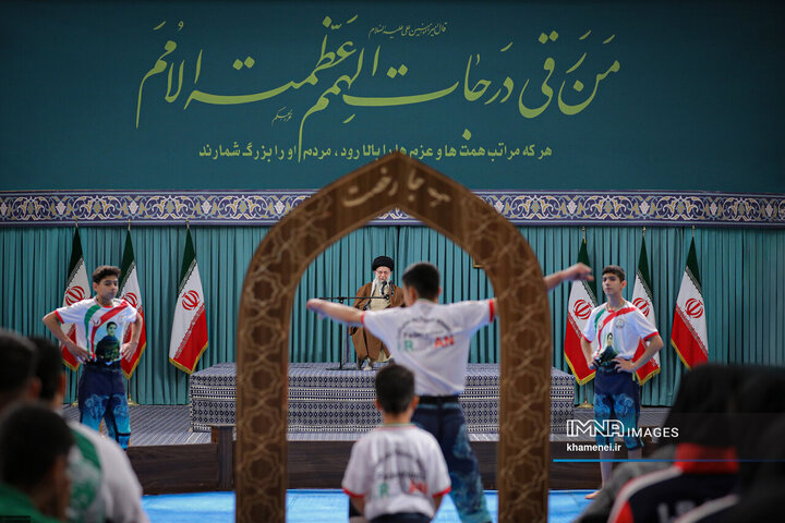در این مراسم تیم ملی نونهالان باستانی کشور، حرکاتی از این ورزش را اجرا کردند که با تمجید و تعریف رهبر انقلاب روبهرو شدند.